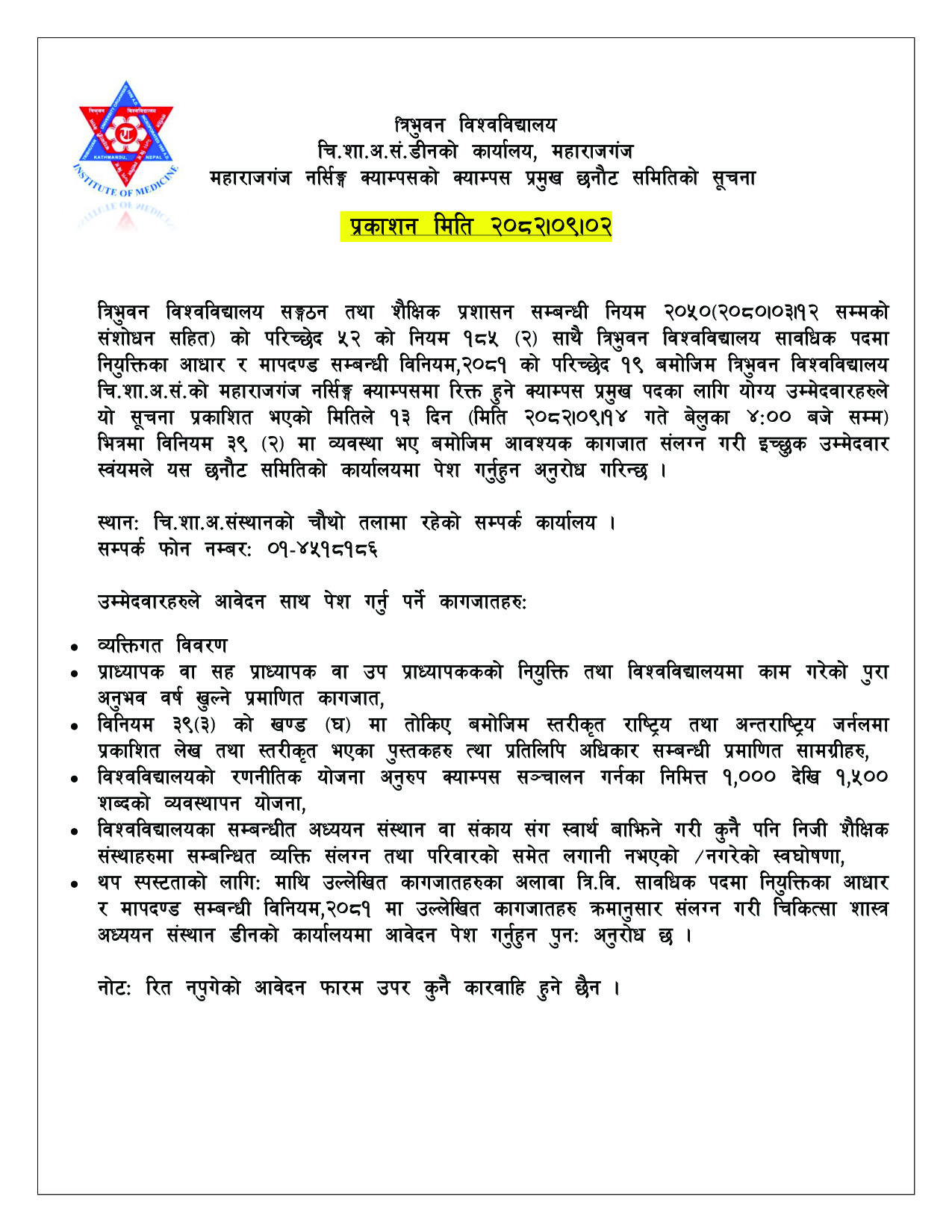 Our Institute is one of the largest institutes under Tribhuvan University (TU). Established in 1972, it has been at the forefront of the education and training of generations of doctors and specialists in Nepal and abroad. Currently, this institute has one central department, 7 constituent campuses,14 affiliated campuses, and 4 hospitals. Among the constituent campuses, it has 1 medical, 1 Ayurvedic, and 5 Nursing campuses. Among 4 hospitals….